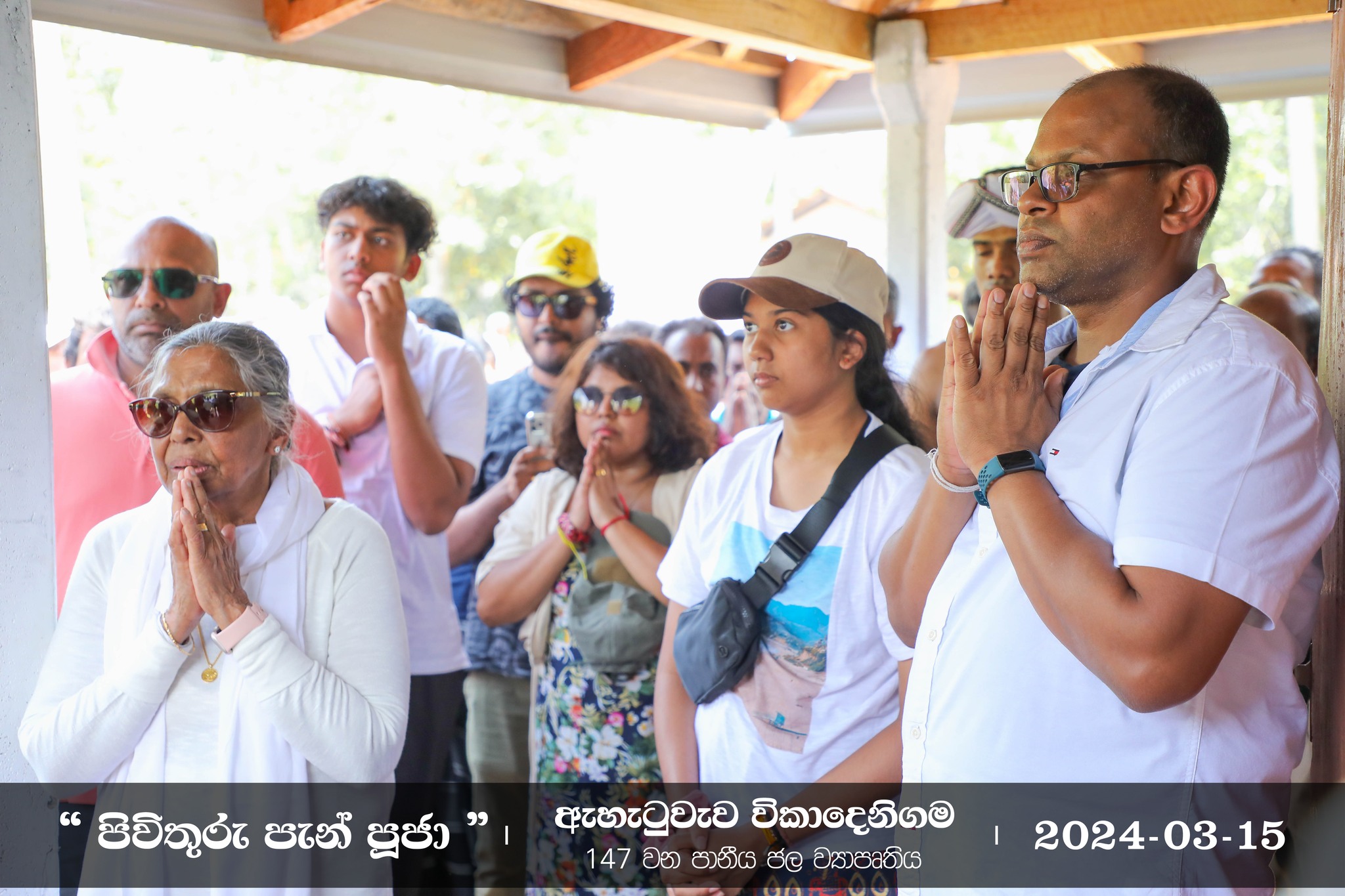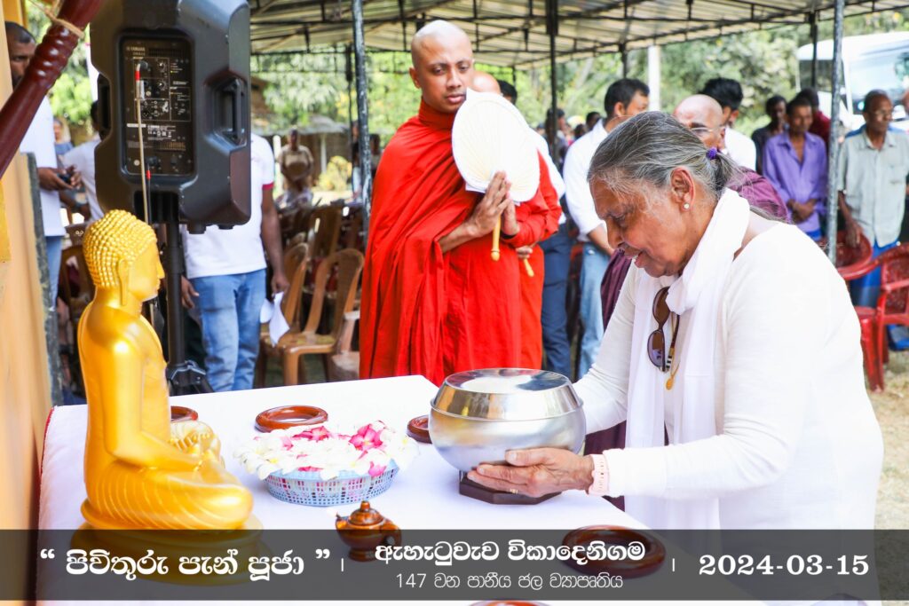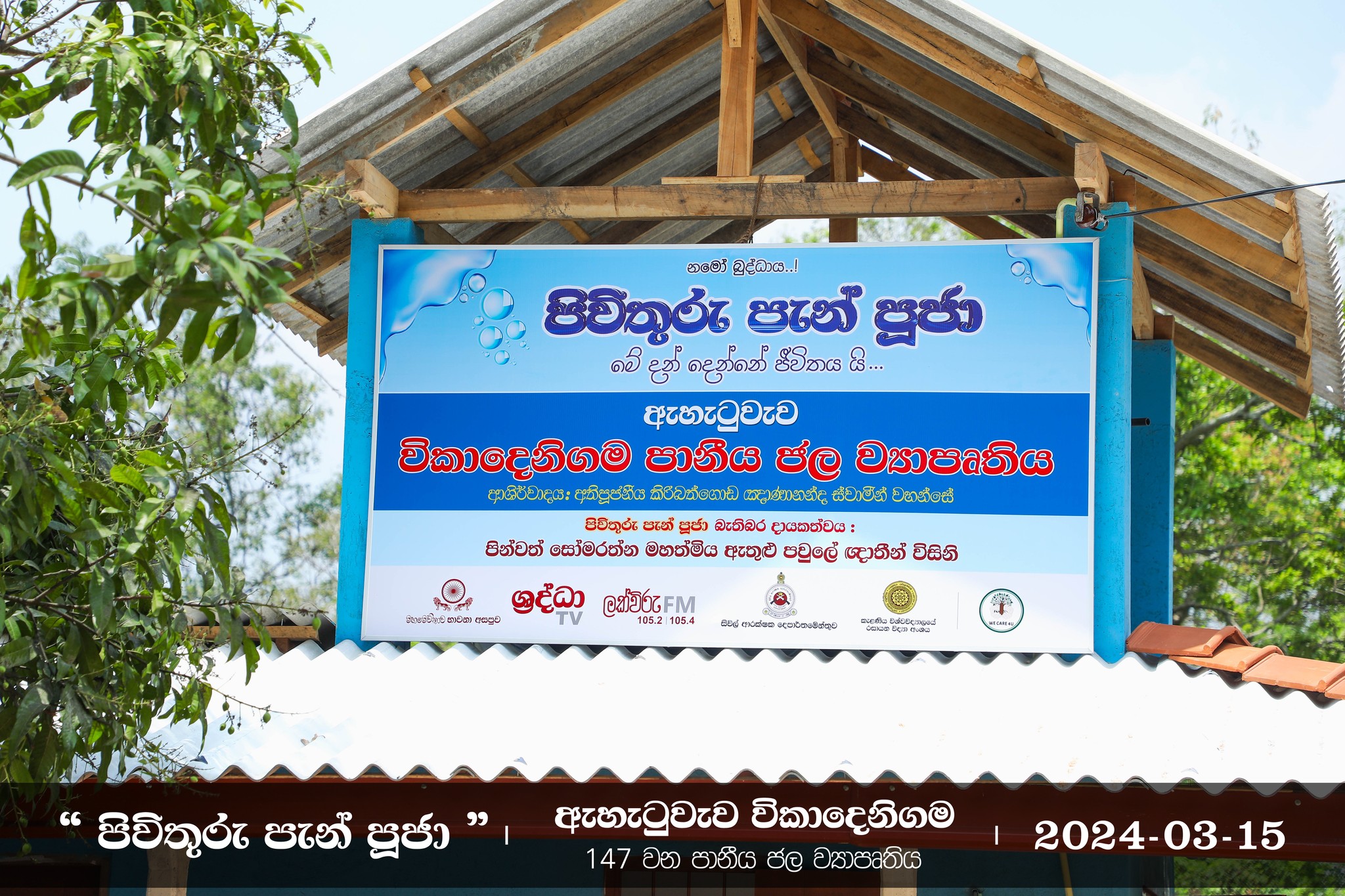 බැරලෝහ මිශ්ර අපිරිසිදු ජල පරිභෝජනය හේතුවෙන් අප මාතෘභූමියේ ප්රදේශ ගණනාවක පැතිර යන වකුගඩු අක්රීය වීමේ මාරාන්තික රෝගයෙන් පීඩාවට පත් අපේ ම සහෝදර ජනතාවගේ ජීවිත ඉන් සුරක්ෂිත කරනු පිණිස, මහමෙව්නාව භාවනා අසපු සංචිතයත්, ශ්රද්ධා රූපවාහිනියත් මඟින් ක්රියාත්මක කරන 147 වන පිවිතුරු පැන් පූජා පුණ්ය ව්යපෘතිය ඇහැටුවැව විකාදෙනිගම ග්රාමයේදී ජනතා අයිතියට පත් කිරීමේ පුණ්ය මහෝත්සවය අතිපූජනීය මහා සංඝරත්නයේ ආශිර්වාද මධ්යයේ 2024 මාර්තු මස 15 වන දින පැවැත්විණි.