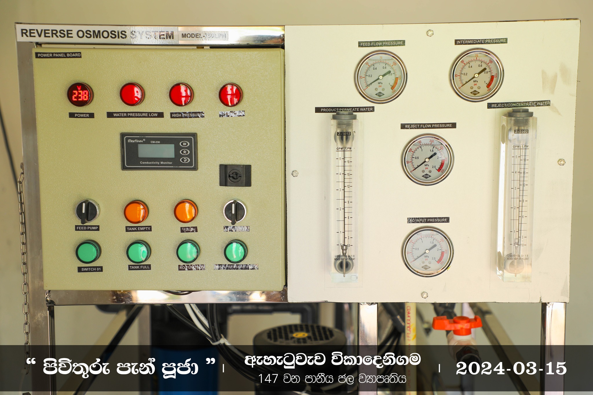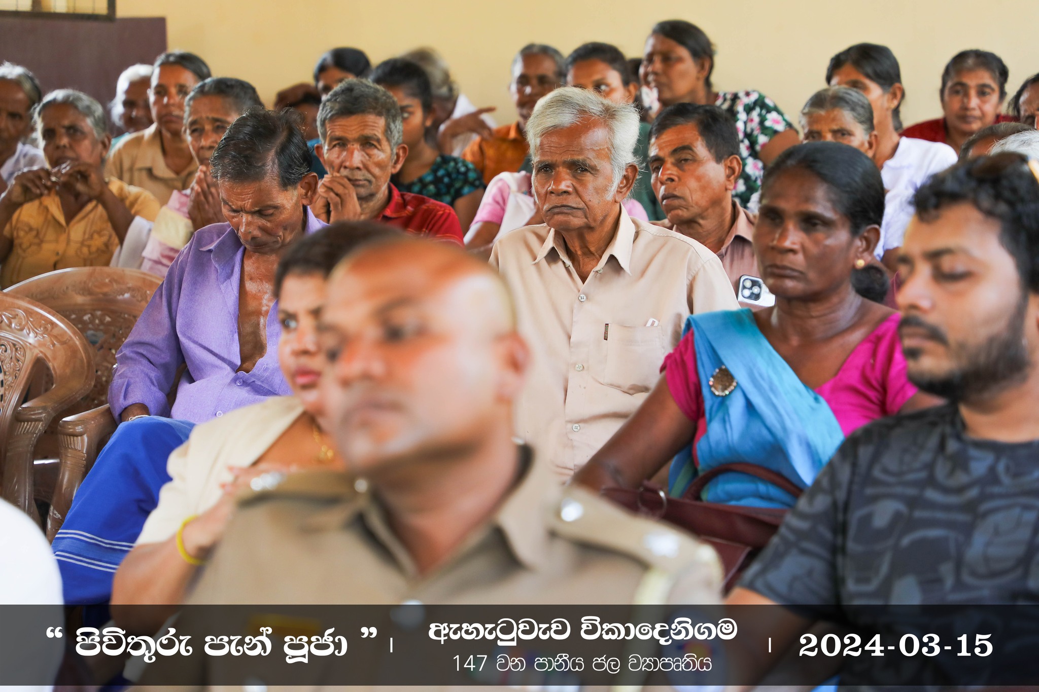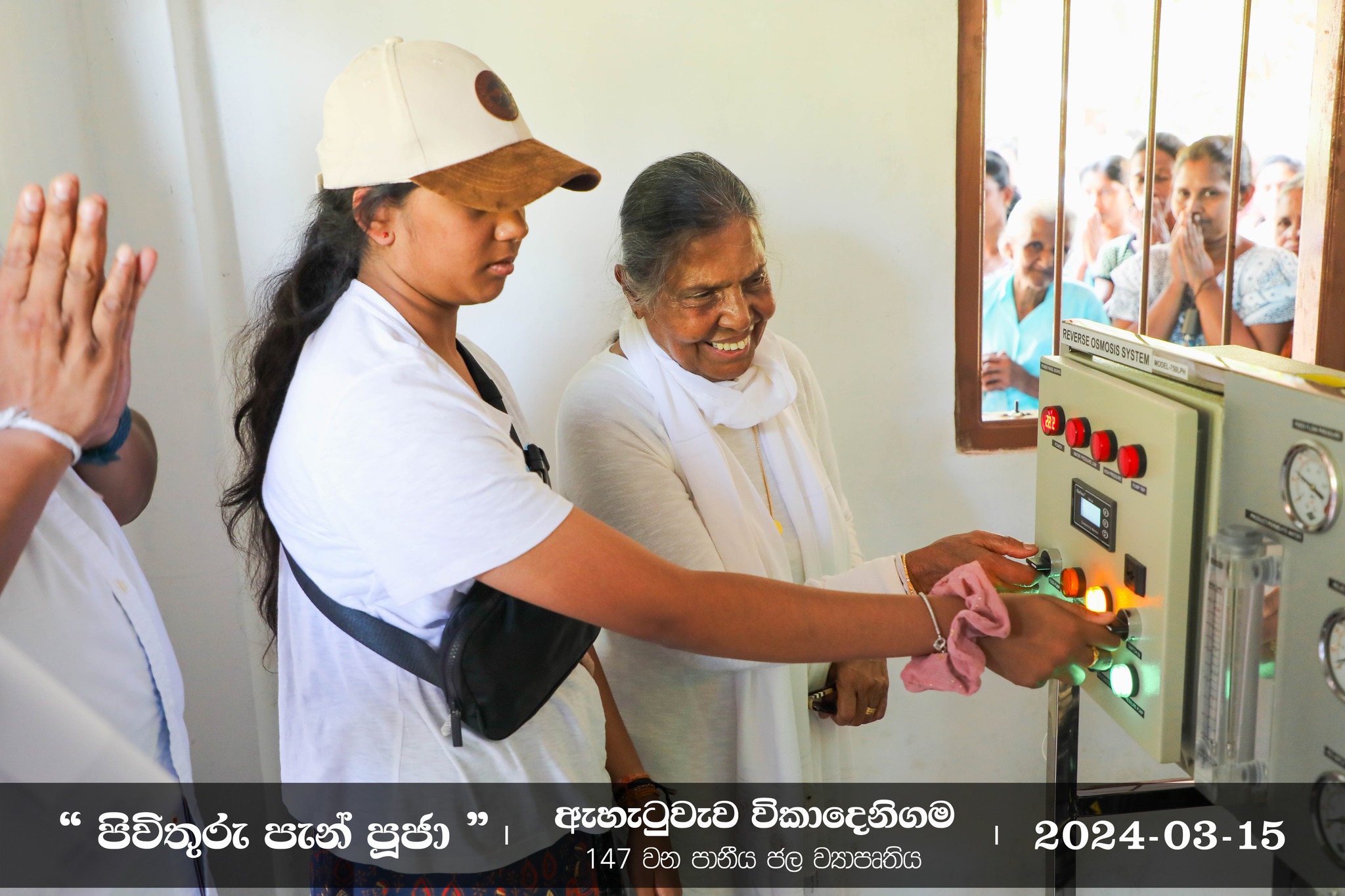 බැරලෝහ මිශ්ර අපිරිසිදු ජල පරිභෝජනය හේතුවෙන් අප මාතෘභූමියේ ප්රදේශ ගණනාවක පැතිර යන වකුගඩු අක්රීය වීමේ මාරාන්තික රෝගයෙන් පීඩාවට පත් අපේ ම සහෝදර ජනතාවගේ ජීවිත ඉන් සුරක්ෂිත කරනු පිණිස, මහමෙව්නාව භාවනා අසපු සංචිතයත්, ශ්රද්ධා රූපවාහිනියත් මඟින් ක්රියාත්මක කරන 147 වන පිවිතුරු පැන් පූජා පුණ්ය ව්යපෘතිය ඇහැටුවැව විකාදෙනිගම ග්රාමයේදී ජනතා අයිතියට පත් කිරීමේ පුණ්ය මහෝත්සවය අතිපූජනීය මහා සංඝරත්නයේ ආශිර්වාද මධ්යයේ 2024 මාර්තු මස 15 වන දින පැවැත්විණි.